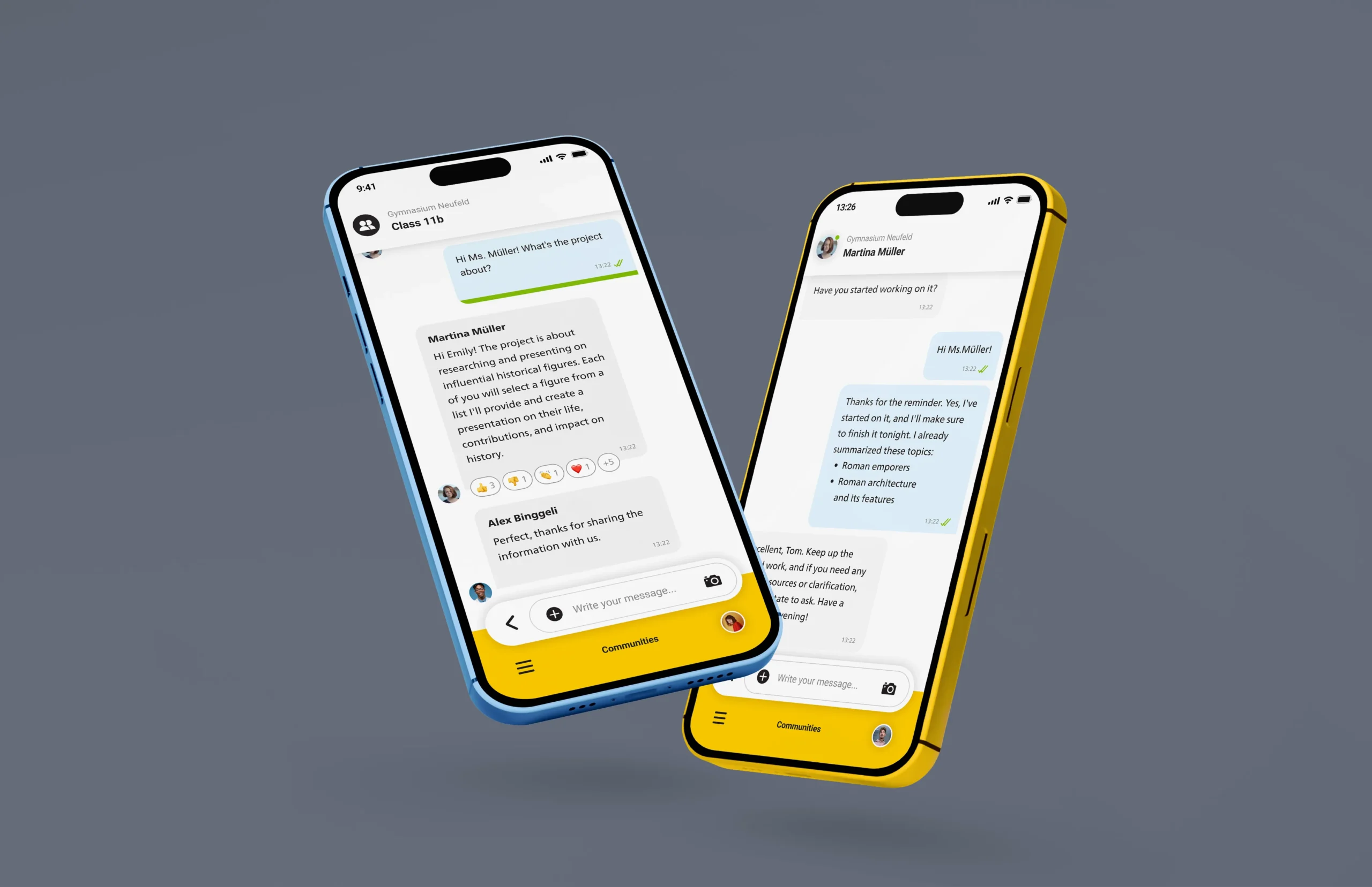 The component dynamically adapts its states — from sending to read confirmations or user reactions. Smooth transitions and logical hierarchy help users understand message context instantly.